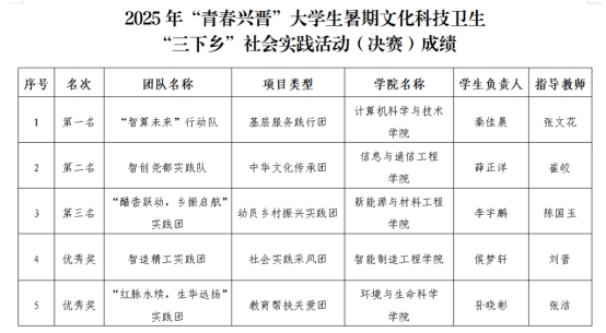 凭借在苏寨村实践中展现的专业能力与社会价值,“智算未来”行动队的实践项目在山西电子科技学院暑期“三下乡”成果评选中脱颖而出,斩获校级一等奖。这份荣誉不仅是对行动队9天实践的肯定,更是对“以专业服务社会,以实践锤炼本领”育人理念的生动诠释。