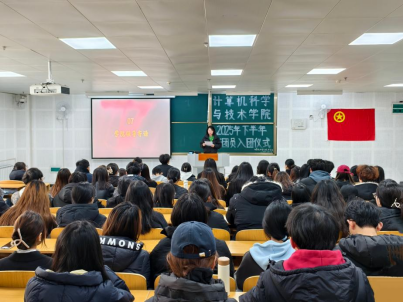 为深入学习贯彻习近平新时代中国特色社会主义思想,进一步加强共青团组织建设,增强团员的光荣感、使命感与组织归属感,计算机科学与技术学院于12月30日在南-414教室组织开展“以青春之名,赴时代之约”2025年下半年新团员入团仪式。学院党总支副书记王艳群老师、团委负责人李丽瑶老师、学生工作负责人张丽君老师及所有新发展团员共同参与此次活动。